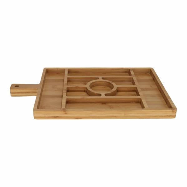 Deze bits & bites tray is een stijlvolle en praktische serveerplank voor tapas, snacks en kleine bites. De tray is gemaakt van natuurlijk bamboe en is voorzien van meerdere vakjes, zodat je hapjes overzichtelijk kunt presenteren. Dankzij het handvat serveer je hem gemakkelijk aan tafel.