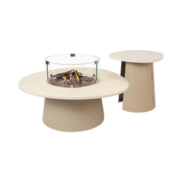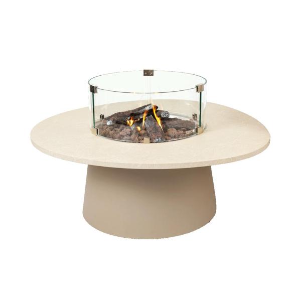 Stijlvolle vuurtafel met ronde brander in de kleur sandy beige