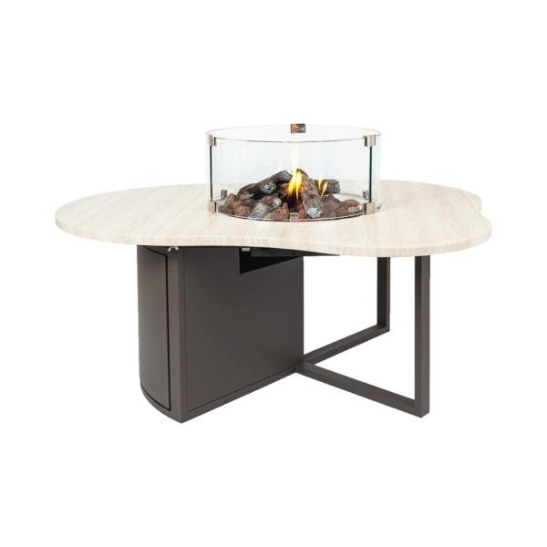 Stijlvolle vuurtafel met marmerlook en organische vorm