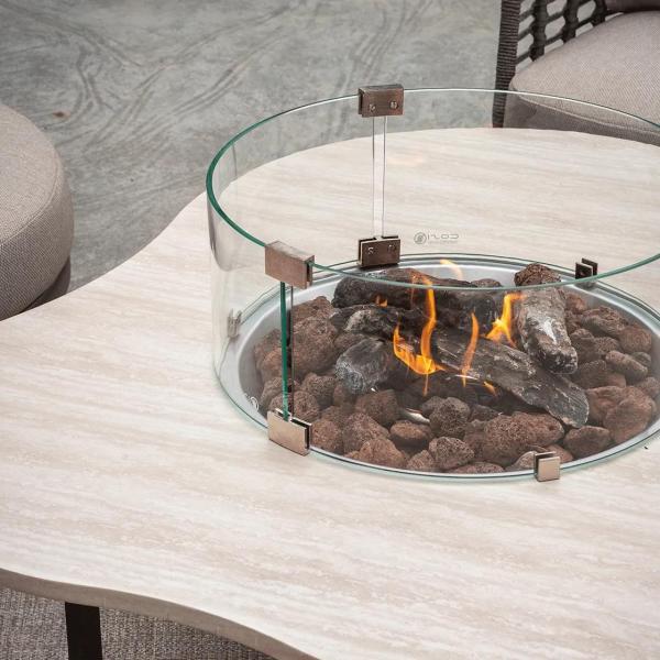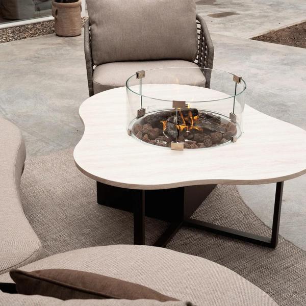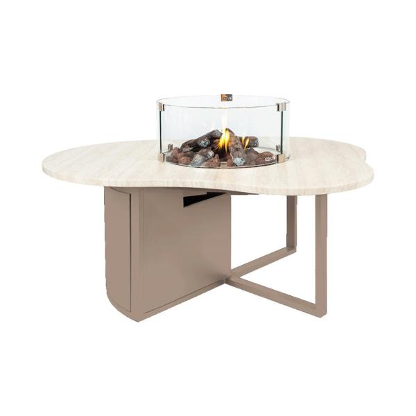 De Cosiloft Novi sandy beige / stone look is een elegante vuurtafel op gas met een uniek, organisch gevormd tafelblad in een luxe marmerlook. Deze design buitenhaard is voorzien van een ronde ingebouwde brander die zorgt voor sfeervolle warmte en een prachtig vlambeeld.