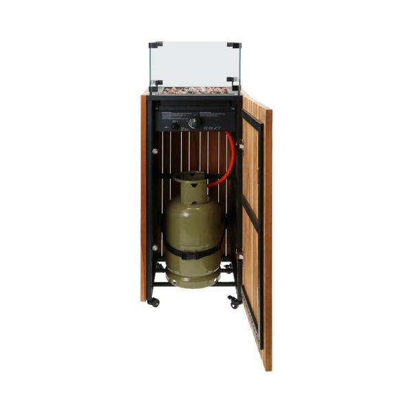 In de pilaarvormige gashaard past een gasfles met een maximale hoogte van 52 cm. Wanneer je een gasfles van 5 kg gebruikt, brandt de Cosipillar Square ongeveer 16 uur. Dit zorgt ervoor dat je samen met vrienden en familie avondenlang van de sfeervolle vlammen kunt genieten. Zowel de gasflessen van Benegas als de DIN-gasflessen passen in deze prachtige gashaard. De Cosipillar Square wordt geleverd inclusief 30mBar regelaar met gasslang, glas, lavastenen, batterij en wieltjes. Besluit je om de meegeleverde wieltjes te gebruiken? Dan is de Cosipillar Square ook nog eens verrijdbaar.