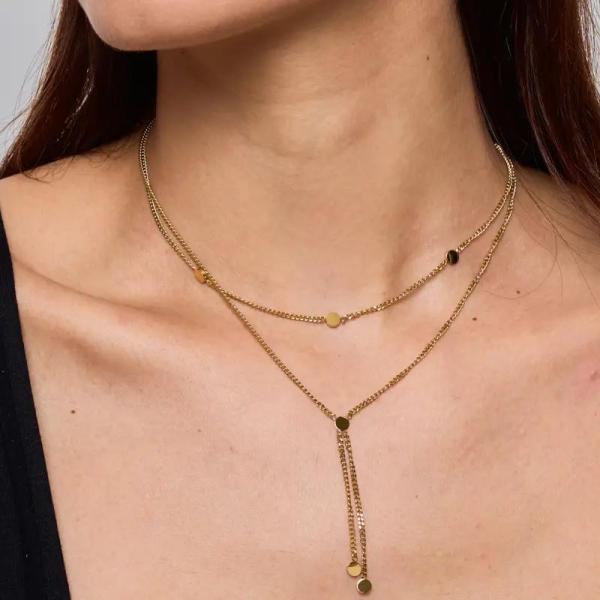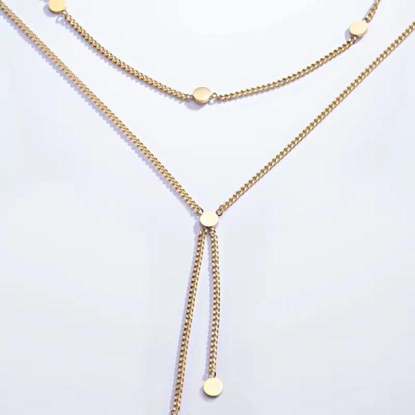 Halsketting met dubbele ketting van roestvrij staal. Bestendig tegen water en wordt niet donker. Gegarandeerd nikkelvrij, cadmiumvrij, loodzoutvrij.
