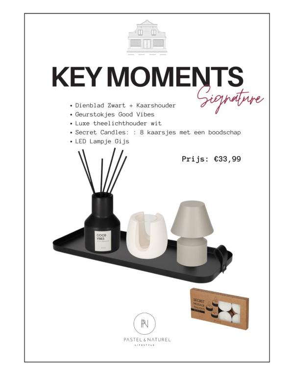 Het Key Moments Signature cadeaupakket is een stijlvol en sfeervol geschenk voor medewerkers of zakelijke relaties. Een elegant cadeau dat uitnodigt om even stil te staan bij de mooie momenten van de dag.