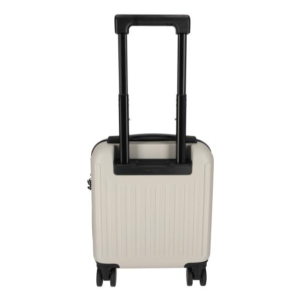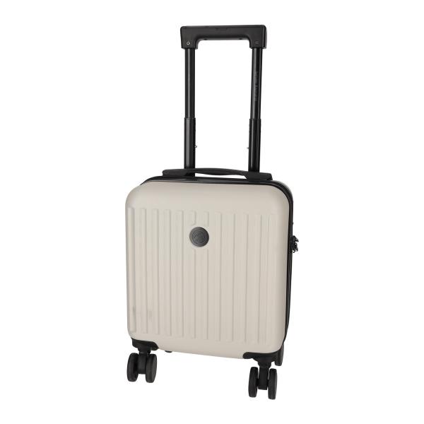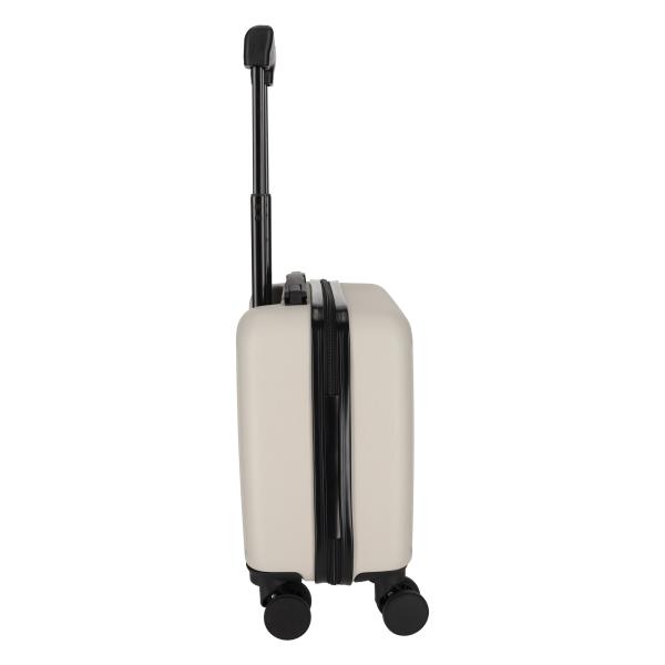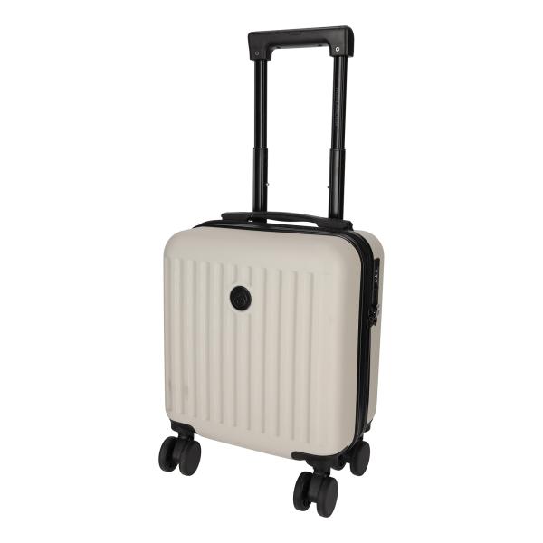 Deze compacte maar luxe trolley is ontworpen om onder de vliegtuigstoel te passen. Hierdoor mag de trolley mee in het vliegtuig en hoef je na de landing niet te wachten op bagage. De trolley is uitgerust met vier dubbele 360° roterende wielen en een uitschuifbare aluminium trolleystang met geïntegreerde telefoonhouder. De binnenzijde bestaat uit een overzichtelijk hoofdcompartiment met buckles en een ritsvak voor kleinere items. 30,5 x 19 x 40,5 cm