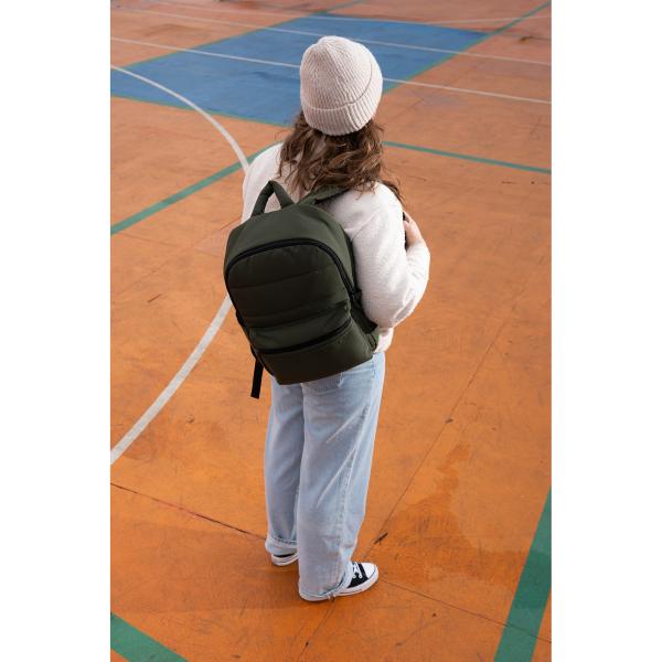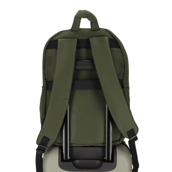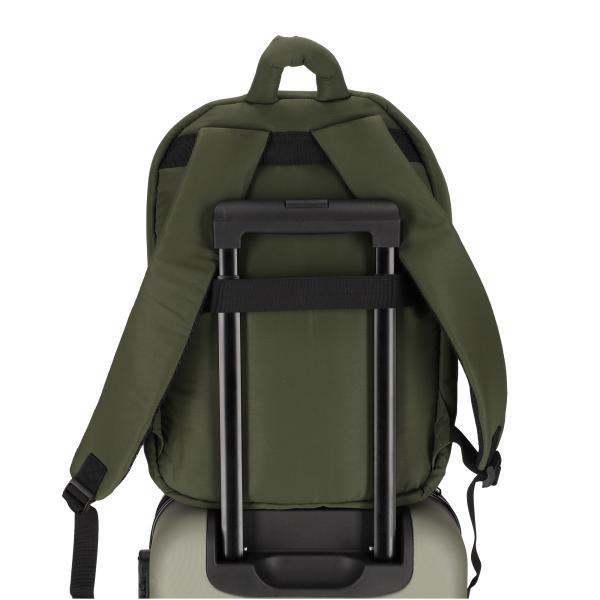 Deze hippe rugtas biedt het comfort van een zachte, gewatteerde tas met de functionaliteit voor dagelijks gebruik. De voorzijde is uitgerust met een ruim ritsvak voor items die je snel bij de hand wilt hebben. Aan de zijkant bevindt zich een handig gaasvakje voor bijvoorbeeld een fles of kleine accessoires. Aan de achterkant zorgt de praktische trolleystrap ervoor dat je de tas moeiteloos meeneemt tijdens het reizen, ideaal voor op het vliegveld of onderweg naar werk. Het ruime hoofdvak biedt voldoende plek voor al je essentials en dankzij de stevige schouderbanden draag je de tas comfortabel de hele dag door.