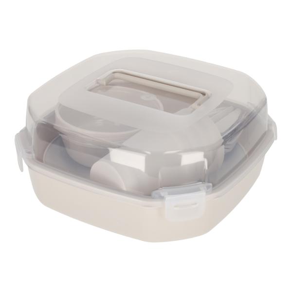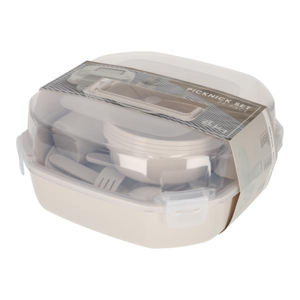 Deze picknickset voor vier personen is ideaal voor een dag in het park, op het strand of tijdens een gezellige kampeertocht. De set bevat borden, bekers, kommetjes en bestek voor vier personen. Een complete en praktische set die elke picknick net wat gezelliger maakt. Formaat verpakking 26 x 12 x 25 cm