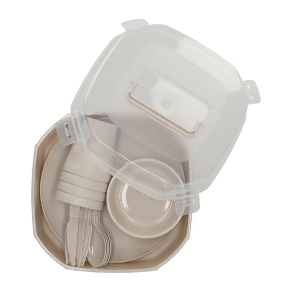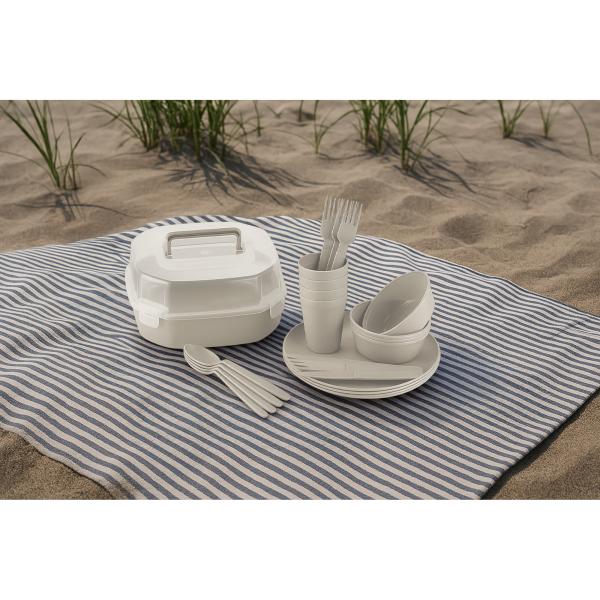 Deze picknickset voor vier personen is ideaal voor een dag in het park, op het strand of tijdens een gezellige kampeertocht. De set bevat borden, bekers, kommetjes en bestek voor vier personen. Een complete en praktische set die elke picknick net wat gezelliger maakt.