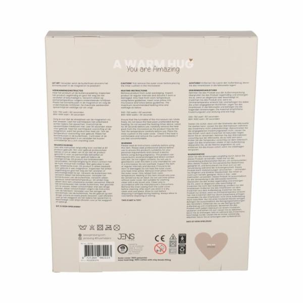 Deze liefdevolle hittepit combineert warmte, comfort en gezelligheid in één. Binnenin zit een uitneembaar pittenzakje dat eenvoudig op te warmen is. De zachte hoes is wasbaar, zodat de hittepit altijd fris en knuffelbaar blijft. Perfect voor koude dagen, het verlichten van stijve spieren of gewoon een moment van ontspanning.