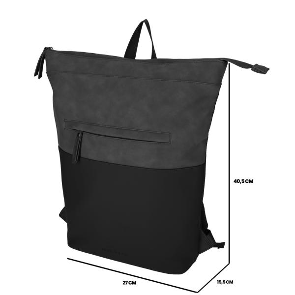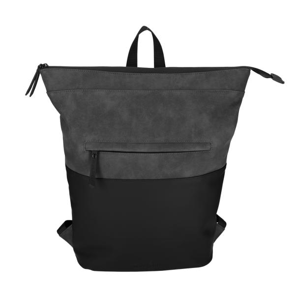 Deze rugtas is de perfecte combinatie van stoer en chique. De bovenkant van de tas is gemaakt van Nubuck vegan leer en de onderkant is gemaakt van Dull PU. Beide een waterafstotend materiaal. In combinatie met de waterdichte rits is deze tas dus ook geschikt voor slechtere weersomstandigheden. De binnenzijde van de tas bevat een groot hoofdcompartiment en een gevoerd laptopvak. Op de voorzijde van de tas bevindt zich een afsluitbaar ritsvak voor kleine accessoires.