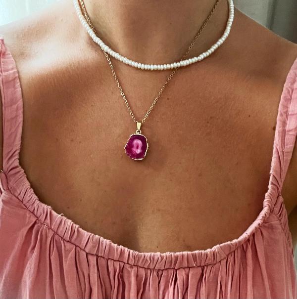 Roze Druzy Agaat Ketting voor Liefde & Positiviteit