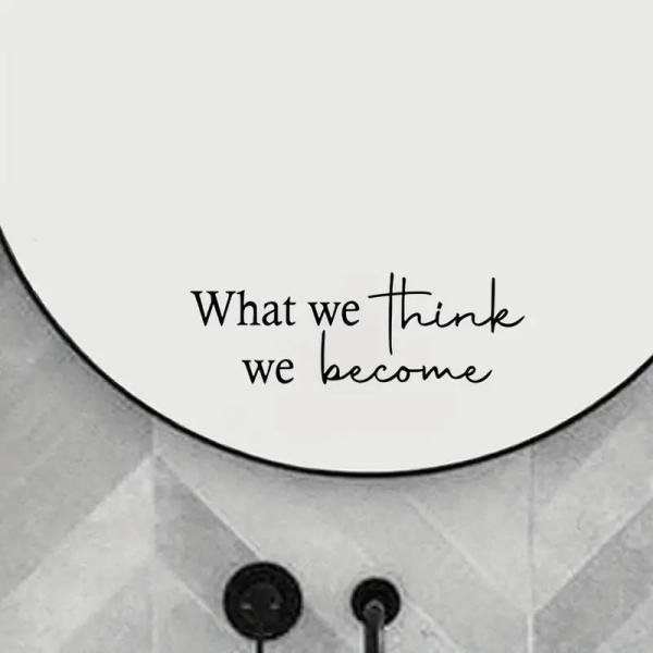 Geef je spiegel een inspirerende touch met deze moderne vinylsticker “What we think we become.” Een dagelijkse reminder dat je gedachten je werkelijkheid vormen — perfect om je zelfvertrouwen te versterken zodra je in de spiegel kijkt.