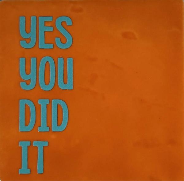De quote tegeltjes zijn gemaakt van keramiek met een mooie 3D-opdruk.