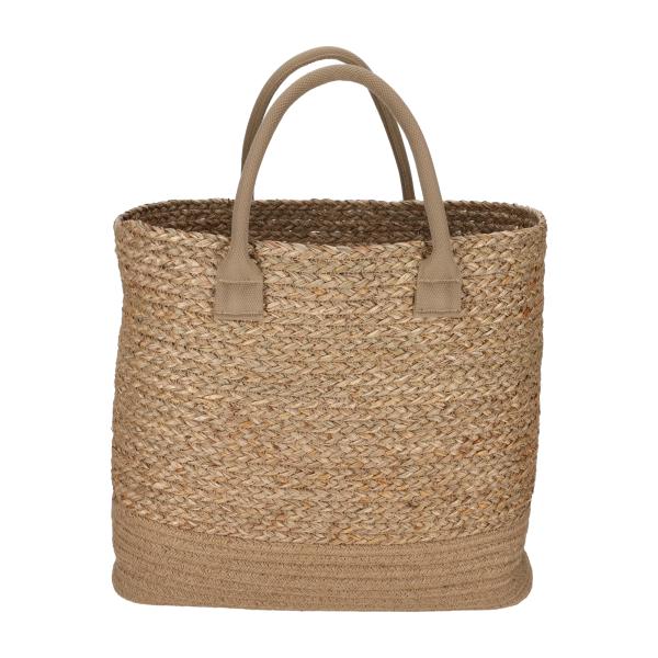 Deze stijlvolle shopper is gemaakt van natuurlijk zeegras en afgewerkt met een stevige jute bodem. Het gevlochten materiaal geeft de tas een warme uitstraling. Binnenin bevindt zich een klein vakje voor sleutels of andere essentials. Dankzij de comfortabele handgrepen is de tas gemakkelijk te dragen. Ideaal voor een dagje strand, boodschappen of als decoratieve opbergmand in huis.